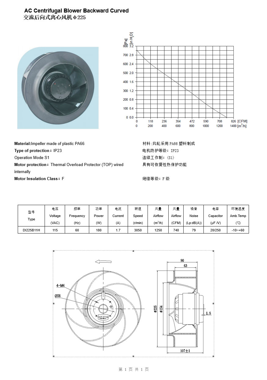 contact us 0755-29555842首頁 > 產(chǎn)品展示 > 后傾式離心風(fēng)機 > DI225B11H