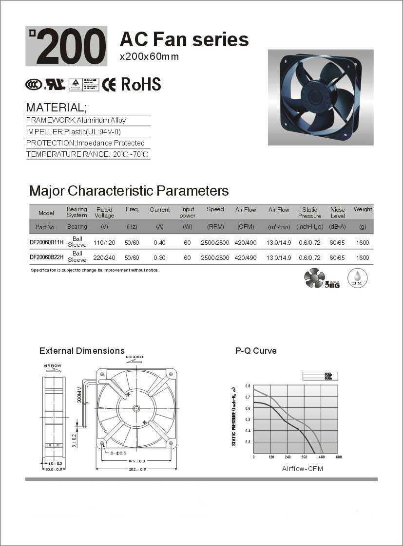 首頁 > 產(chǎn)品展示 > 交流散熱風扇 > 20060散熱風扇